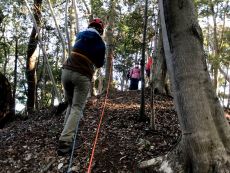 実践講習では店舗講座で学んだ結びを利用して悪場の通過や、ロープがある事でどんな安全管理が出来るのかの体験実習を行います。自分はそういう場所・そういう登山はしないからと考えず、山を歩くという事は少なからず悪場やリスクは必ずあります。登山の安全行動として是非体験して頂きたい内容濃い初心者向けの体験実践技術講習です。